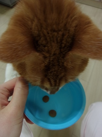 プスちゃんには豆の代わりにフードを食べてもらいました!